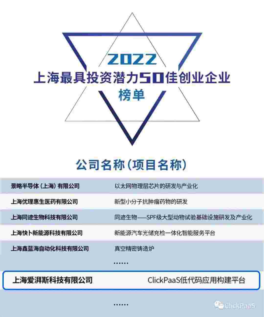 VIVO钱包 作为国内低代码PaaS平台的领军企业,,,,,与120家创企入围角逐。。。。。。。。。。。期间接受了来自德同资本、、、、领中资本等知名投资机构的10位投资人组成专家评委团的背靠背盲选。。。。。。。。并最终入围“2022上海最具投资潜力50佳创业企业”榜单,,,,,,,,,,,,,被列入“上海市重点培育创业企业库”。。。。。。。。。。。