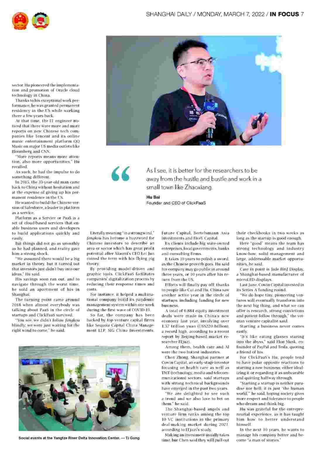 《上海日报》专访VIVO钱包创始人、、、、、、、、CEO胡柏,,,,,,,,,,,,探究其创业背后的故事!!!!!!!!!!!